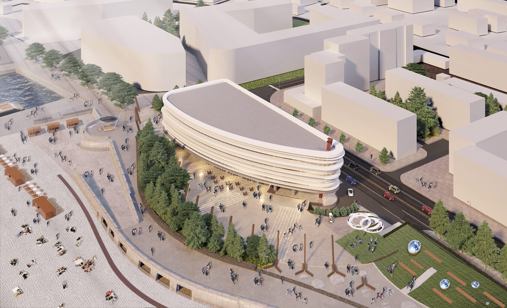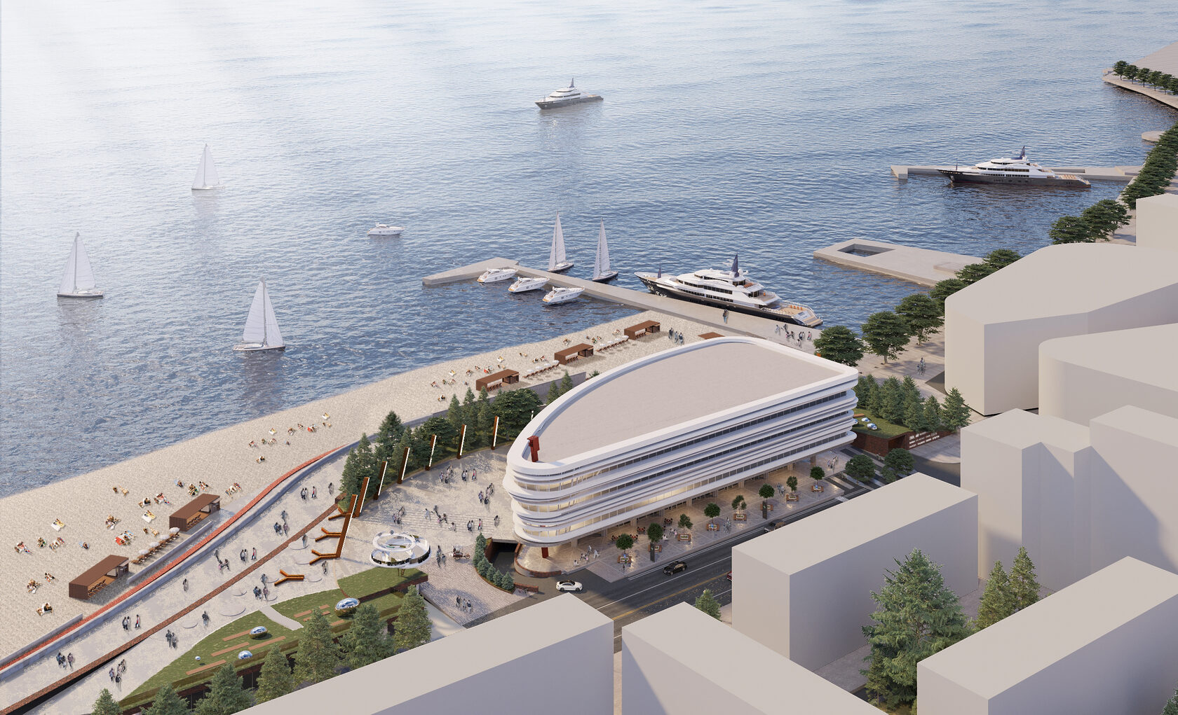 This object was a conceptual project of a multifunctional shopping and entertainment complex with the working name White sail, which includes the gentrification of the coastal territory.