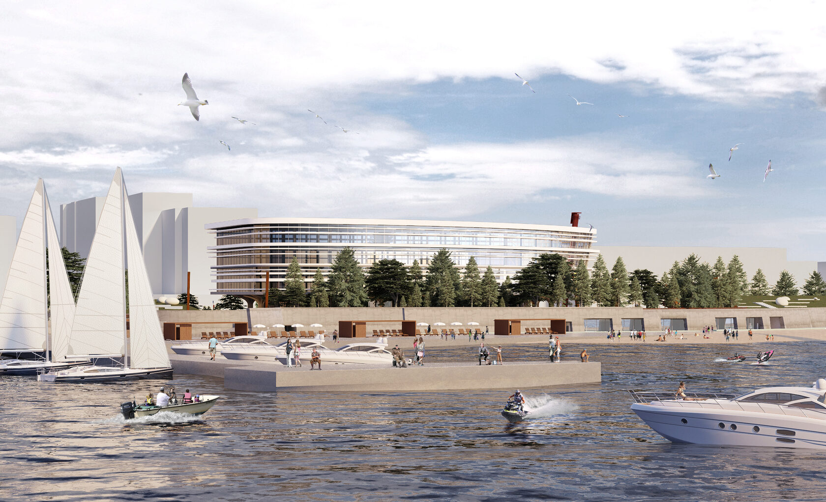 Этим объектом стал концептуальный проект многофункционального торгово-развлекательного комплекса с рабочим названием White sail, в состав которого входит облагораживание прибрежной территории.