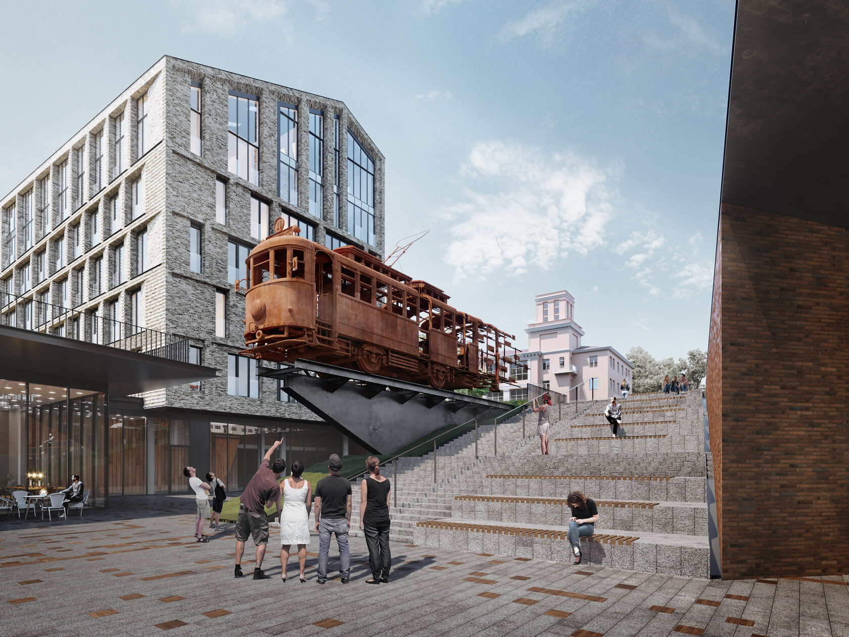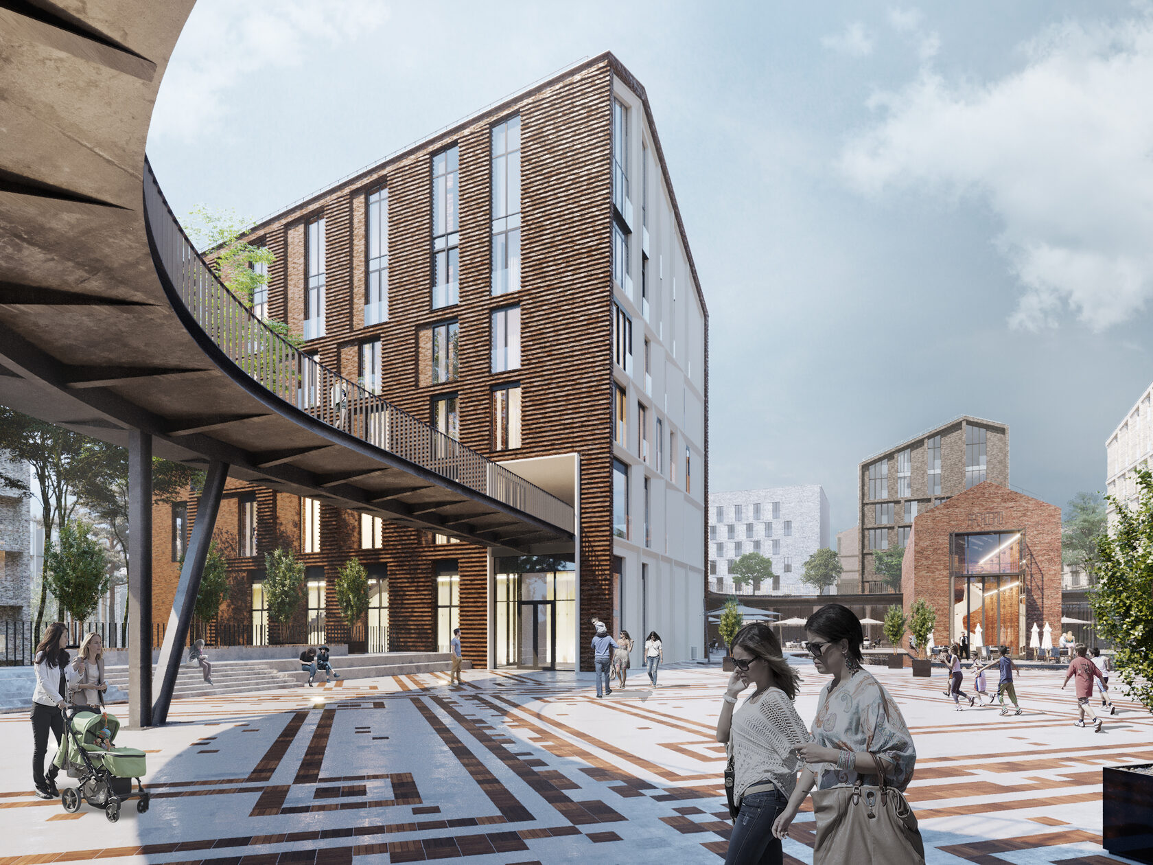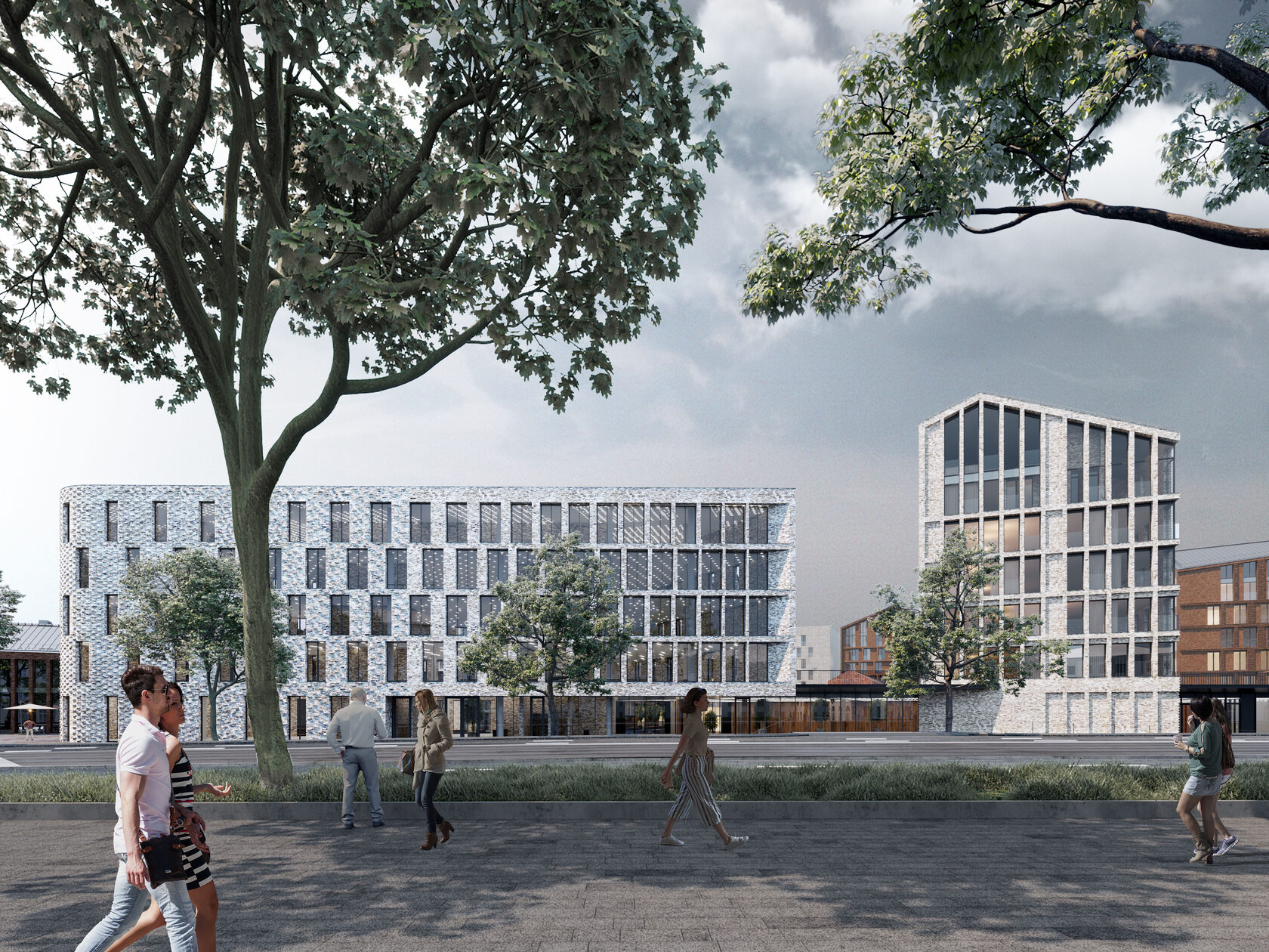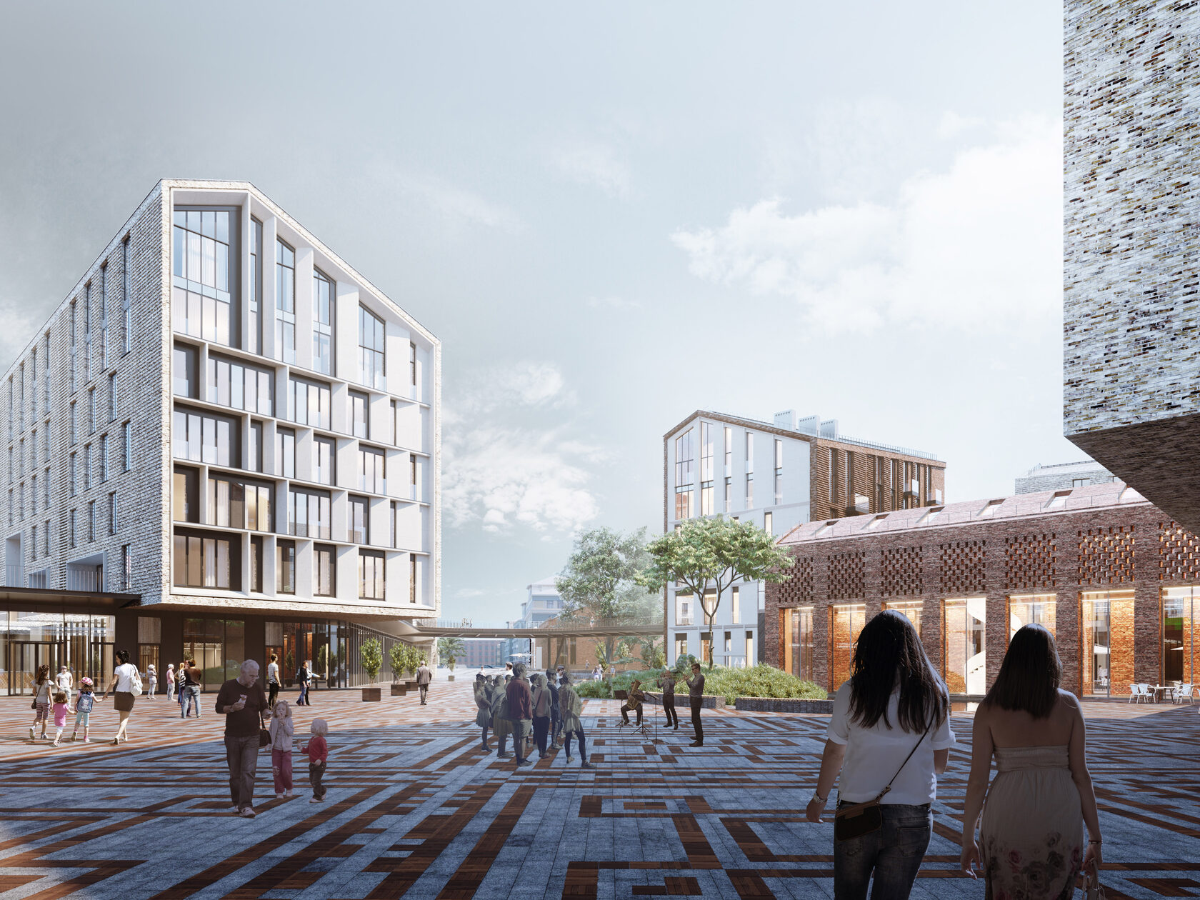 Визуализация комфортабильного жилого комплекса с объектами социально-общественного назначения и подземными паркингами.