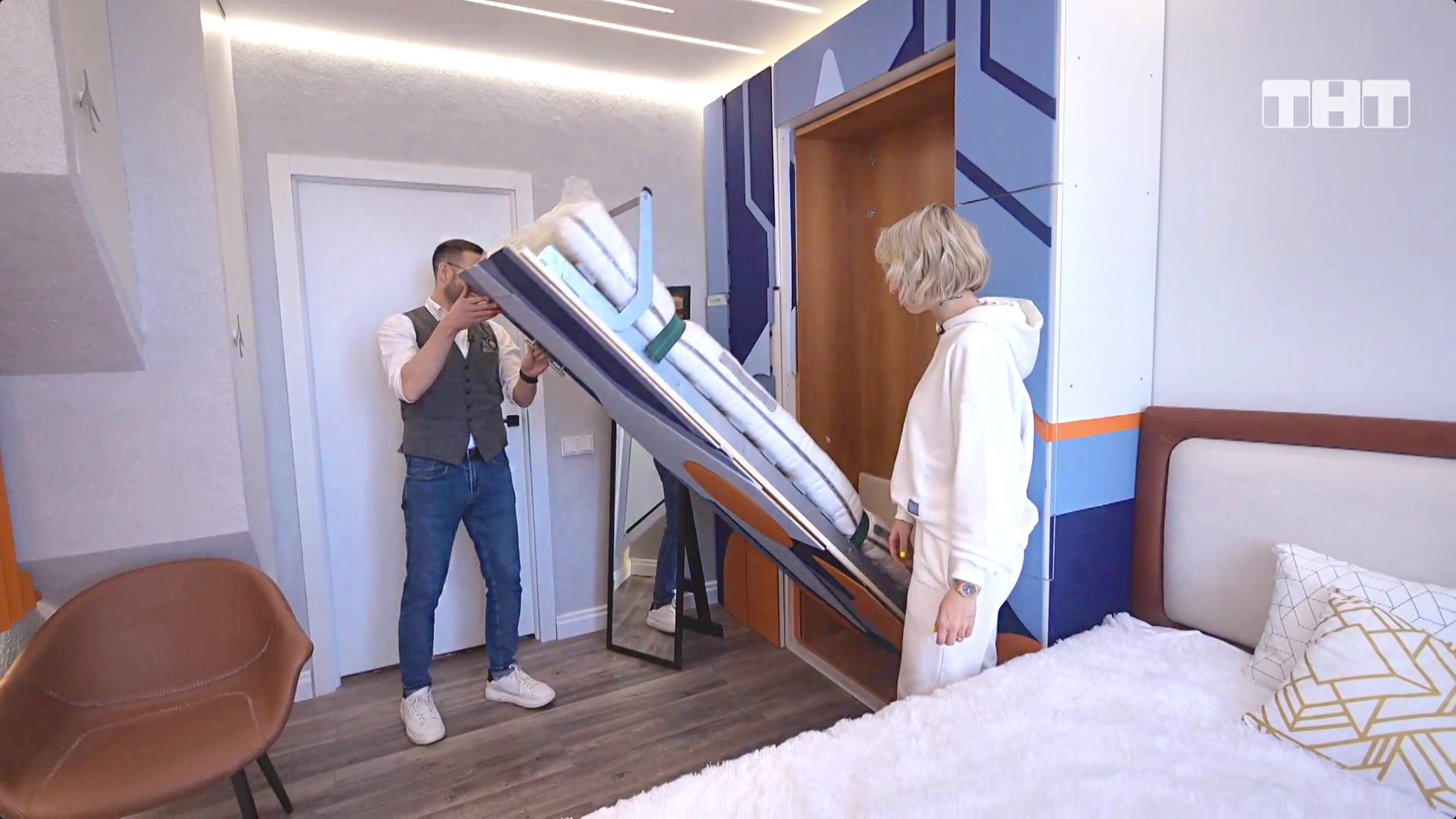 "Battle of Designers" - a show in which designers come up with not just interiors for people, but build happy homes" After passing the qualifying round and the first task, our team went to the second stage, the task of which was already the design of a real apartment. Two competing participants were given a room and 3 days to create a design project and implement it.