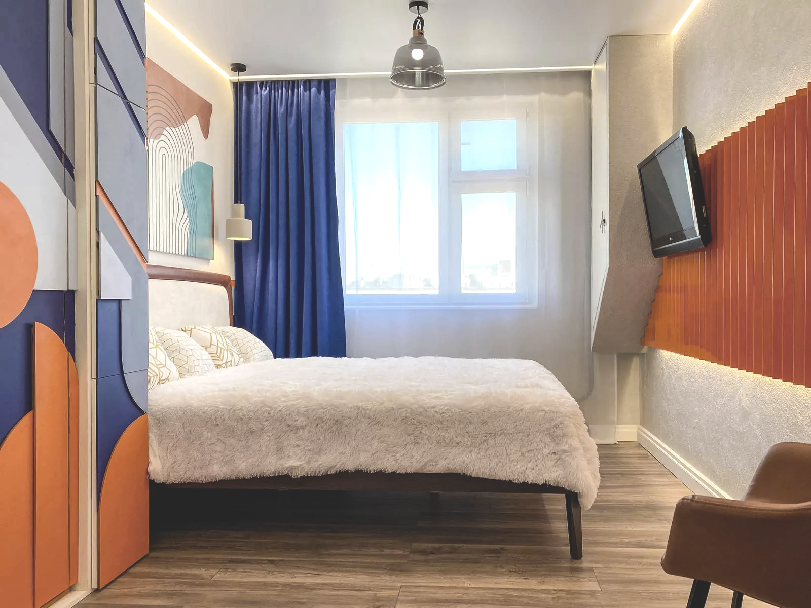Малые габариты комнаты, сжатые сроки и свобода действий и стиля стали интересным испытанием для нас.