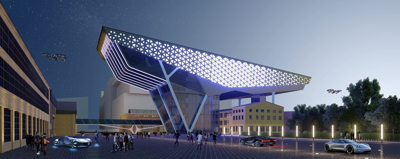• Organization of scientific and production workshops, concert, exhibition and retail spaces, organization of an international public center for various kinds of business and work events based on industrial facilities on the territory of the former aircraft factory "Banner of Labor".
